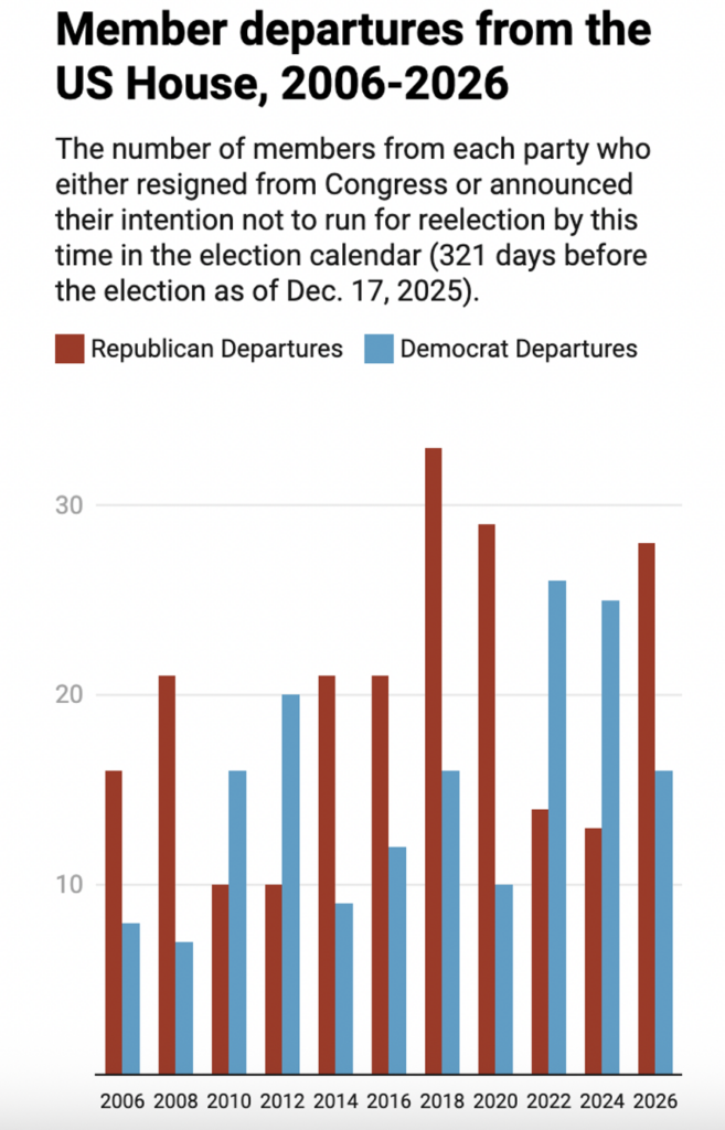 Figure 5. The Fulcrum. Member departures from the US House, 2006-2026.